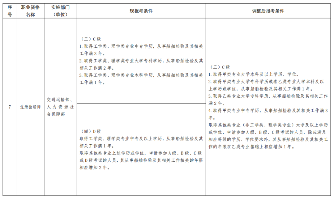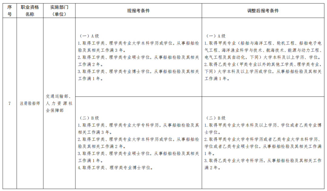 包括:注冊城鄉規劃師;注冊測繪師;注冊核安全工程師;監理工程師;造價工程師;建造師(一級);注冊驗船師;漁業船員;注冊安全工程師(中級);拍賣師;注冊計量師(一級);特種設備檢驗、檢測人員資格;執業藥師。