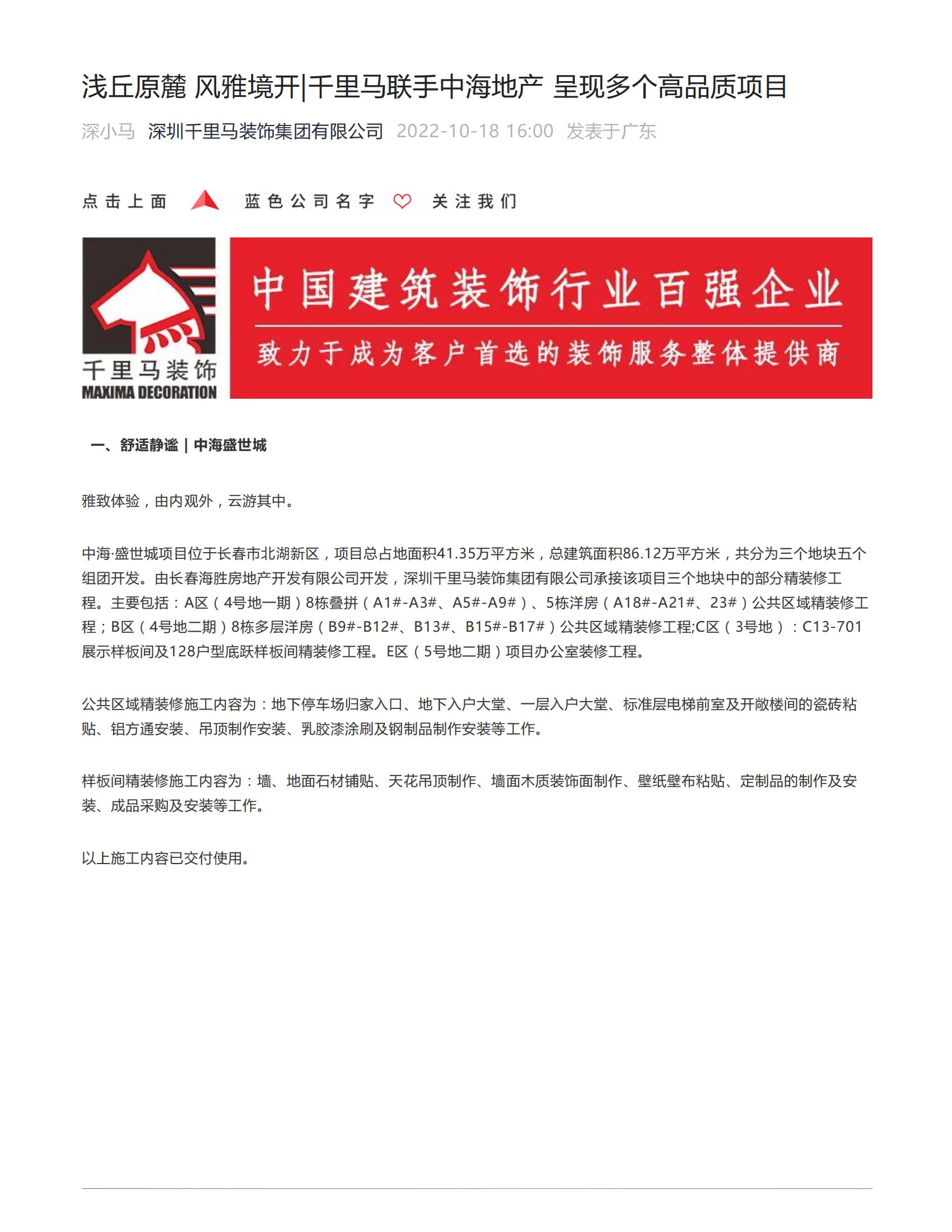 淺丘原麓 風雅境開|千里馬聯手中海地產 呈現多個高品質項目