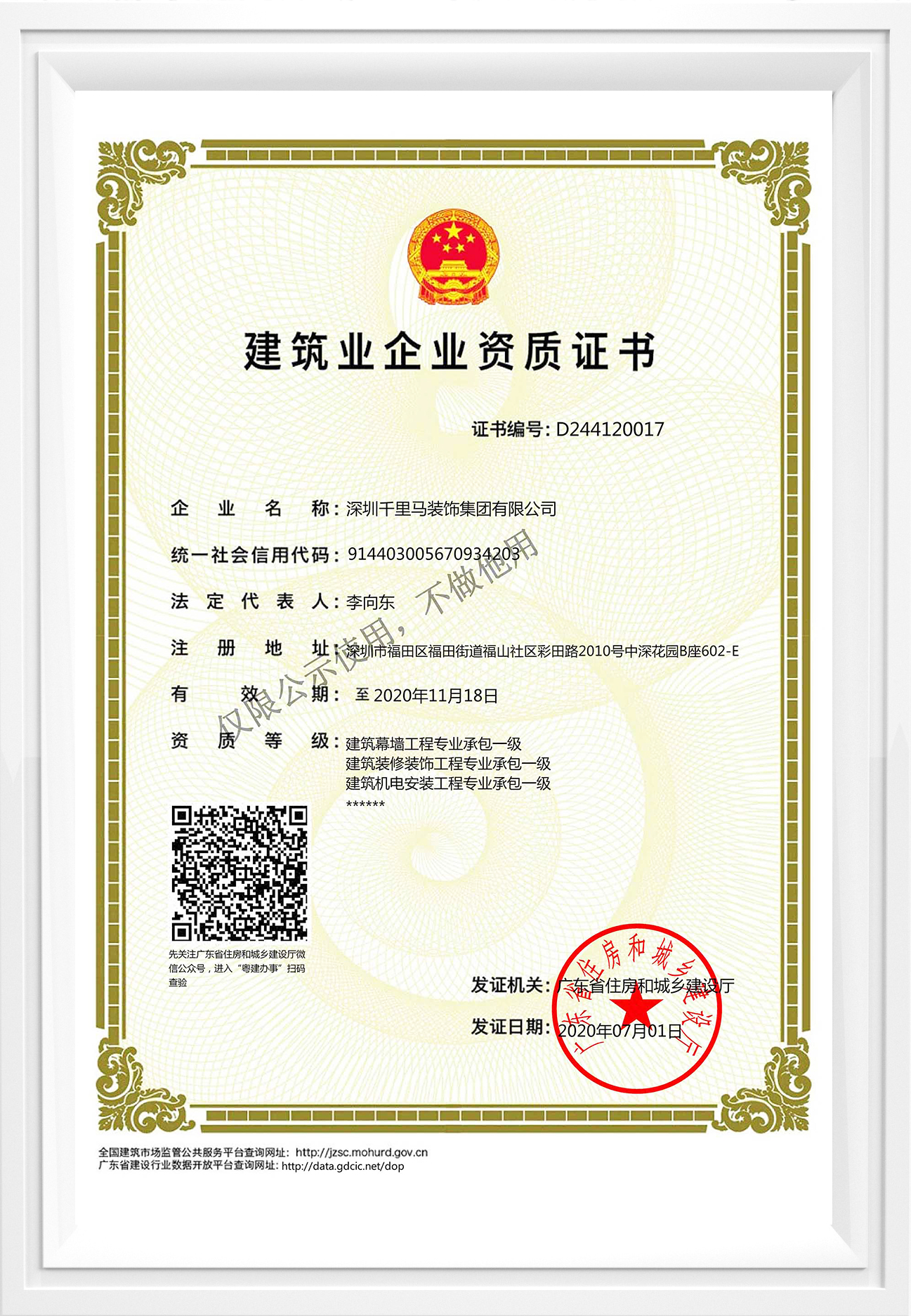 建筑裝修裝飾一級、建筑幕墻一級、建筑機電安裝一級