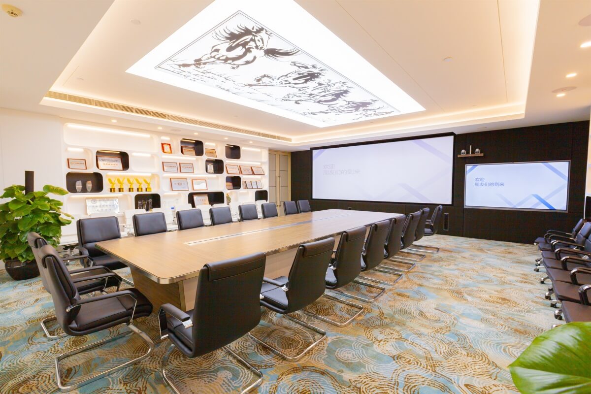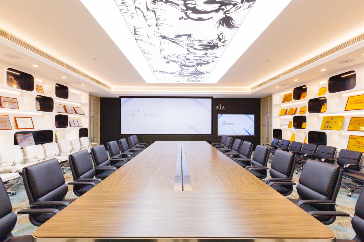 公司斥資220萬,引進全方位的視頻、會議、培訓系統,4個全功能會議培訓室,可滿足公司總部、各分支機構、各項目部500人同時在線的會議及培訓需求。同時引進裝飾物聯網機器人,實現自主迎賓、定點講解、道路引導、疑問解答等商務接待功能。