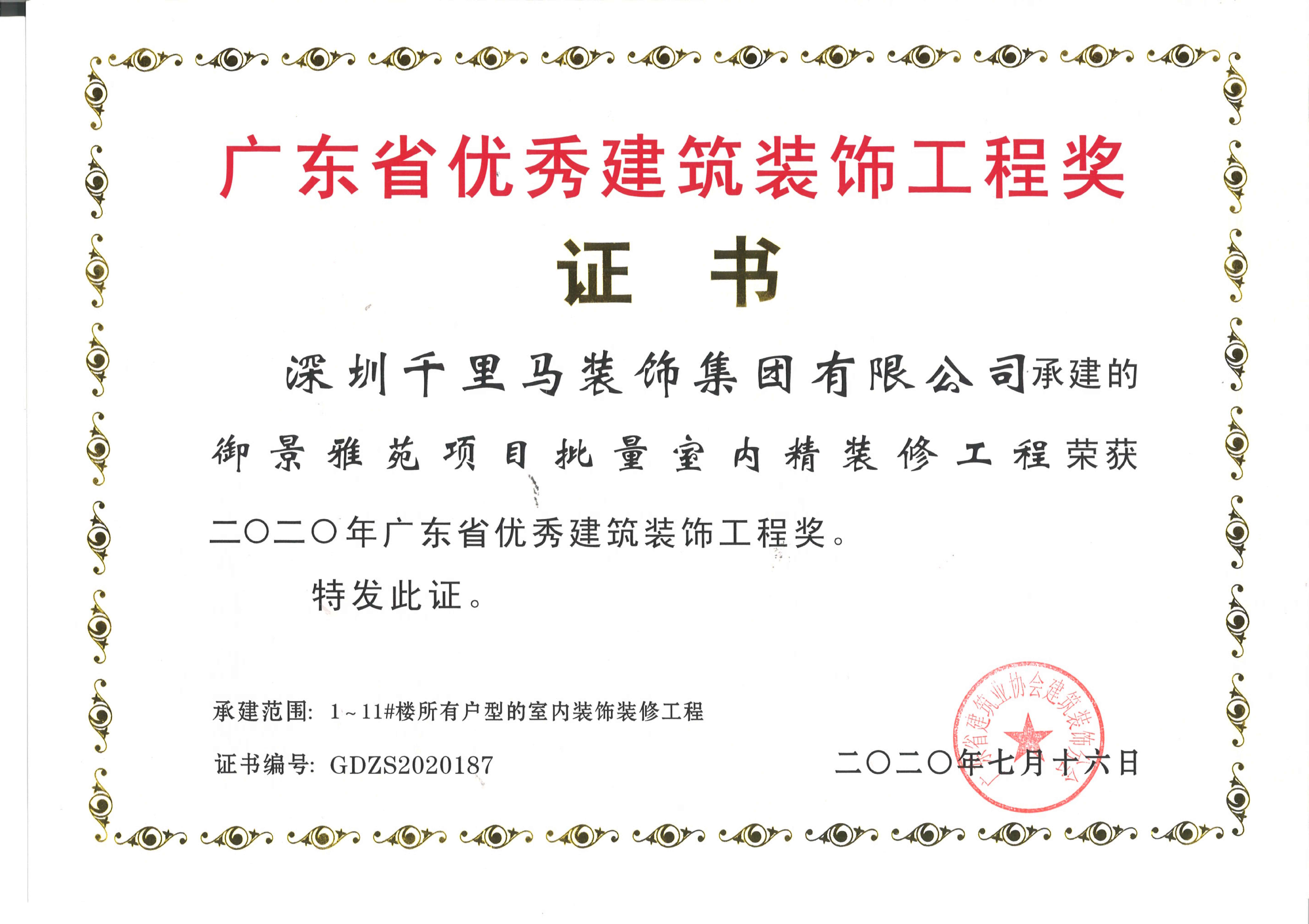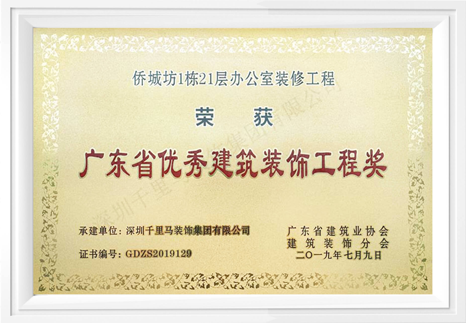 2019年廣東省優秀建筑裝飾工程獎