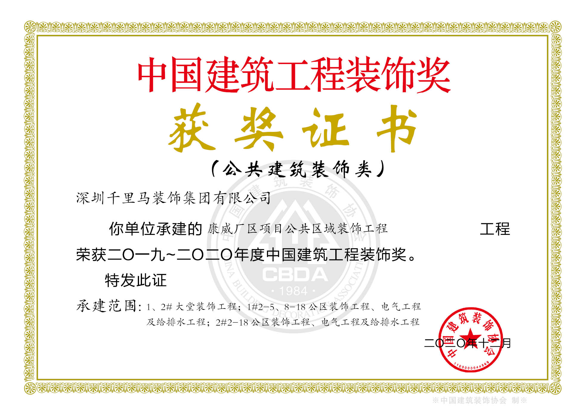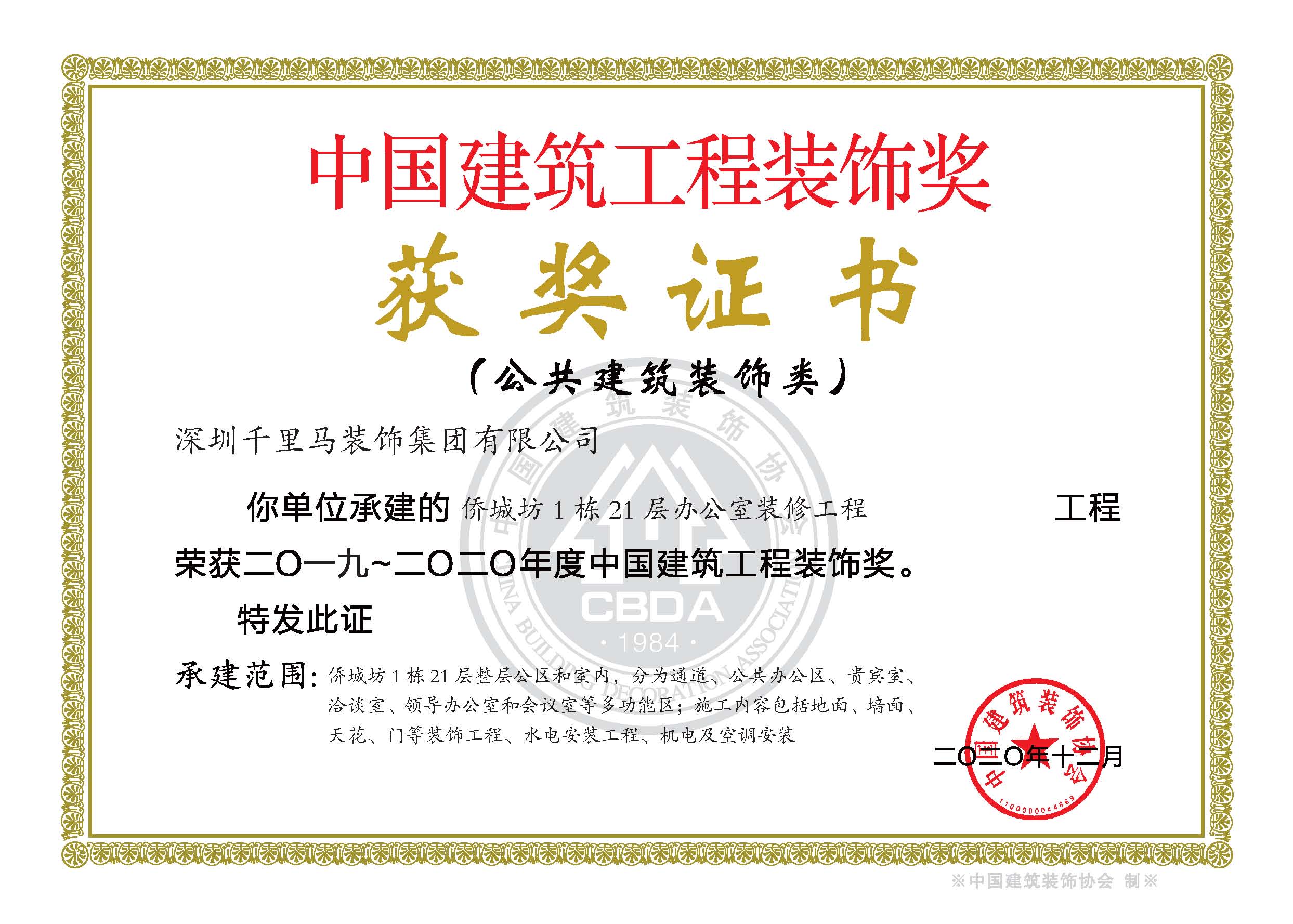 2020年 中國建筑裝飾設計金獎