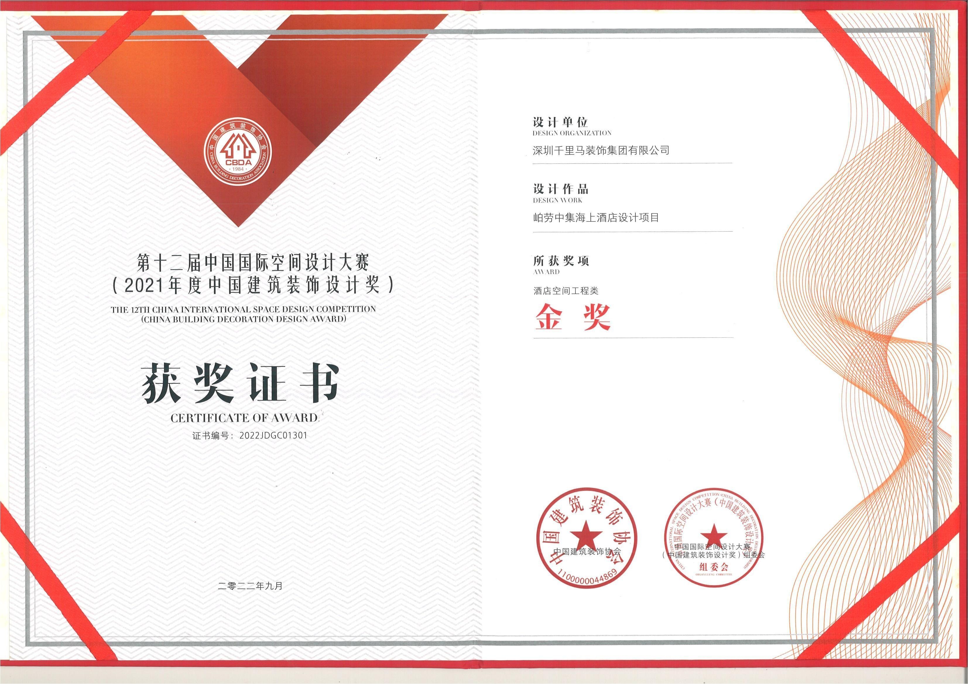 2021岶勞中集海上酒店設計項目 金獎