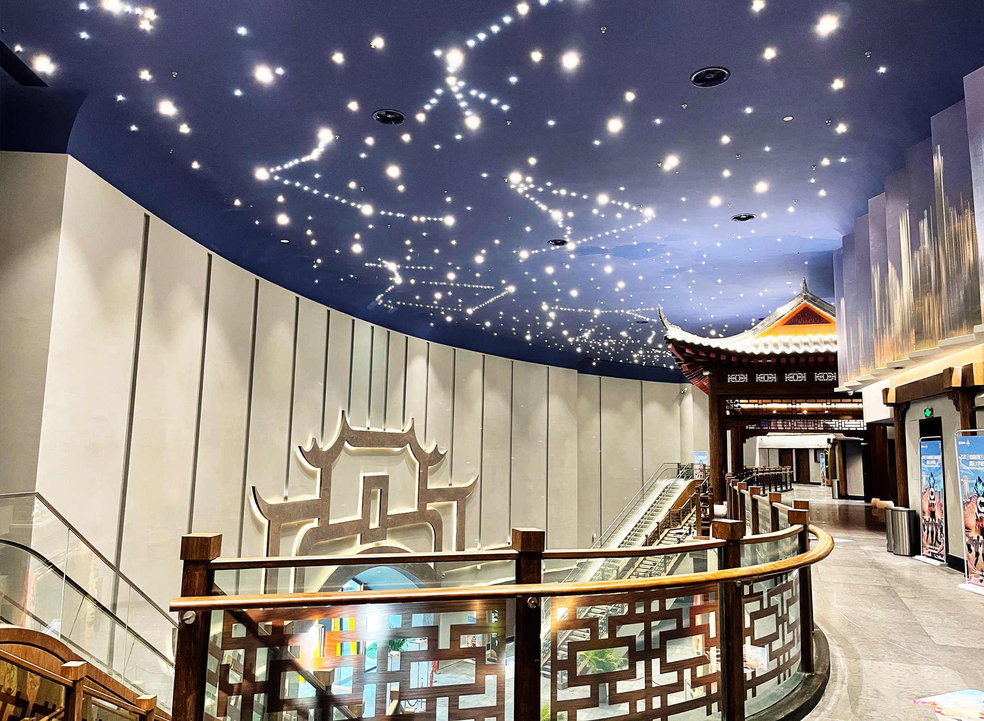 該工程裝修裝修面積大,工期短,工藝標(biāo)準(zhǔn)及美感要求高,但具古典特色及現(xiàn)代氣息相結(jié)合的秀場(chǎng),承建范圍包括演藝區(qū)、非演藝區(qū)、附屬樓的精裝、簡(jiǎn)裝、機(jī)電安裝、內(nèi)門、地面、內(nèi)隔墻體安裝、內(nèi)墻涂料、玻化磚、吊頂、衛(wèi)生潔具、衛(wèi)生間內(nèi)裝修、彩繪等。演藝區(qū)觀眾廳天花應(yīng)用大量的金屬拉伸網(wǎng),墻面為沖孔鋁板,是本工程的主要特點(diǎn),也是施工最大難點(diǎn),貫徹整個(gè)工程,潔凈、美觀、色澤一致、無(wú)劃痕。